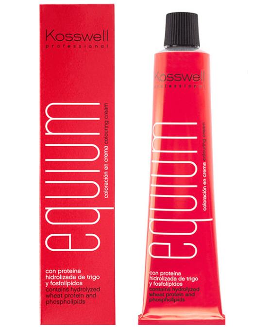 Haz click en la imagen para ver la carta de color de los tonos disponibles del tinte KOSSWELL.El tinte KOSSWELL EQUIUM te ofrece además un tratamiento intenso y vigoroso gracias a la tecnología de los fosfolípidos que actuan desde el interior de la fibra capilar dando fuerza y resistencia a los cabellos. Efecto brillo intenso gracias al hidrolizado de trigo.