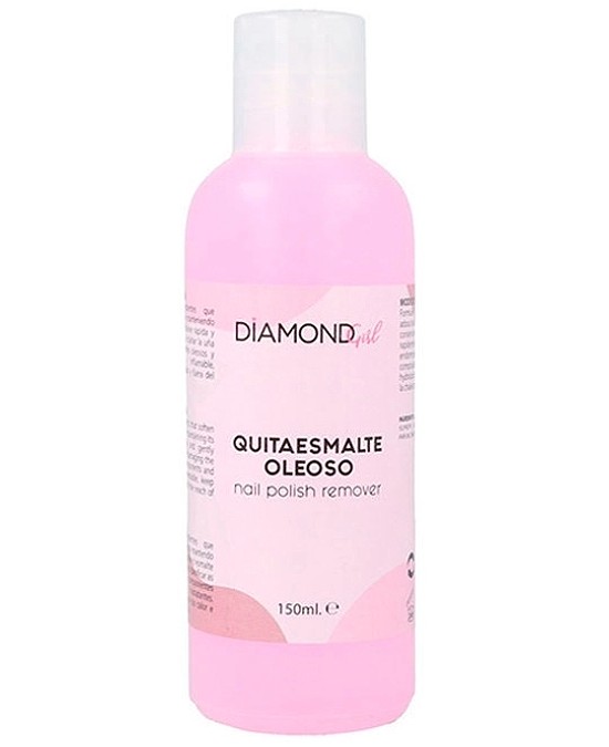 El quitaesmalte oleoso DIAMOND GIRL de buena calidad profesional está formulado con ingredientes que suavizan e hidratan las uñas manteniendo su equilibrio natural. Disuelve rápida y suavemente el esmalte sin dañar la uña gracias a sus componentes oleosos y agentes hidratantes.